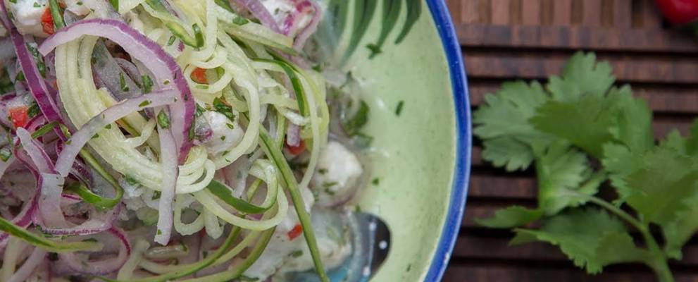 Once the fish has marinated, add the red onion strips and mix well. Drain the excess juice into another bowl and then return it to the fish, adding as much or as little as you like.