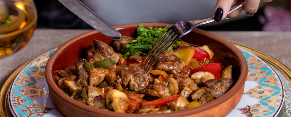 Heat 1 tbsp of oil in a flameproof casserole dish. Once it’s hot, brown the meat – a few at a time – and move to a plate when browned.