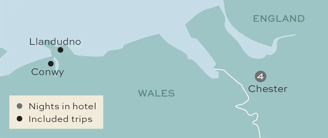 We'll get out and about today on a walking tour of Chester in the company of a Local Guide. Founded by the Romans more than 2,000 years ago, its fascinating history is reflected in its well-preserved city walls, which are the oldest, longest and most complete in England. We'll also see the city's impressive Roman amphitheatre and admire many medieval half-timbered houses. Our stroll concludes at Chester Cathedral, which stands on the site of a 7th century Saxon church.Back at the hotel we'll gather for dinner. Meals included: B,D