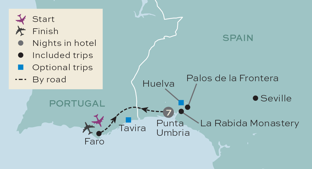Andalucia was a hugely significant location for Christopher Columbus, and the aptly named Columbus Trail pinpoints the main sites connected with this great explorer. On an included tour today, we will visit La Rabida Monastery, where Columbus stayed whilst waiting for financial backing from the Catholic monarchs for his voyage to the New World in 1492. We'll also head to the Harbour of the Caravels, to see full-size replicas of the three vessels that made this historic journey, the Santa Maria, Pinta and Niña.