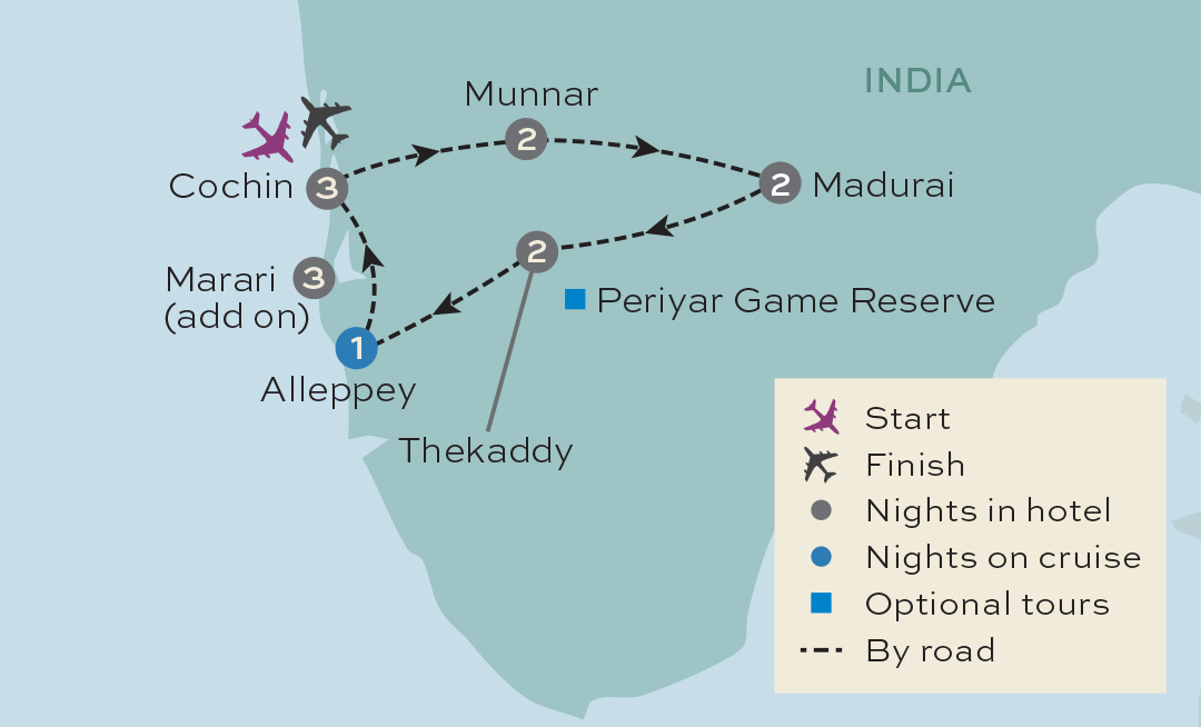 Absorb the heady mix of Kerala on this incredible journey from bustling cities to peaceful backwaters on a tour packed with fascinating cultural and wildlife encounters that reveal the region's finest treasures.