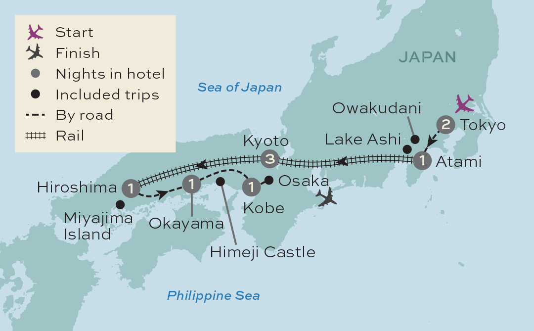 Hiroshima is an intriguing city with many fascinating sights and we'll head here today by Bullet Train. We'll visit Miyajima Island, one of the most scenic spots in Japan, known for the floating shrine of Itsukushima, before arriving at our hotel.