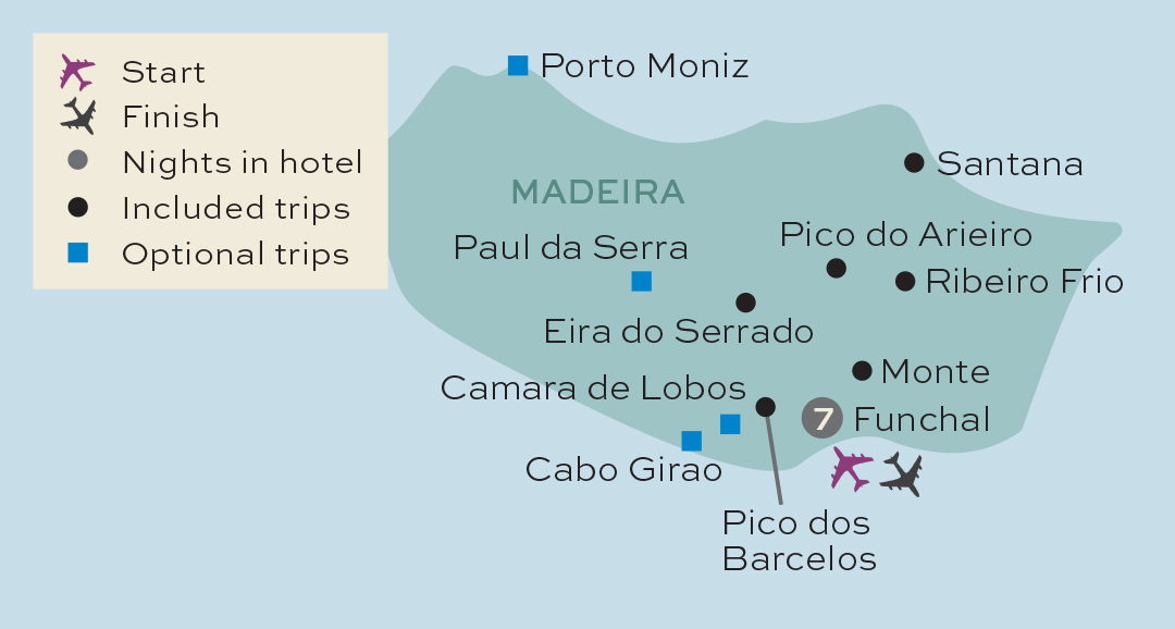 Today we head up the hills of the island to admire spectacular views from Pico do Arieiro, the thirdhighest peak on the island, before calling at the trout hatchery in Ribeiro Frio. We’ll enjoy lunch at Santana, a pretty village where you will be able to see the unique, thatched triangular houses, typical of the region. After lunch we’ll make our way back to Funchal along the stunning north coast. The view from Portela is simply breathtaking and we’ll also pass Machico, the island’s first capital. Meals included: B,L.jpg?format=webp)