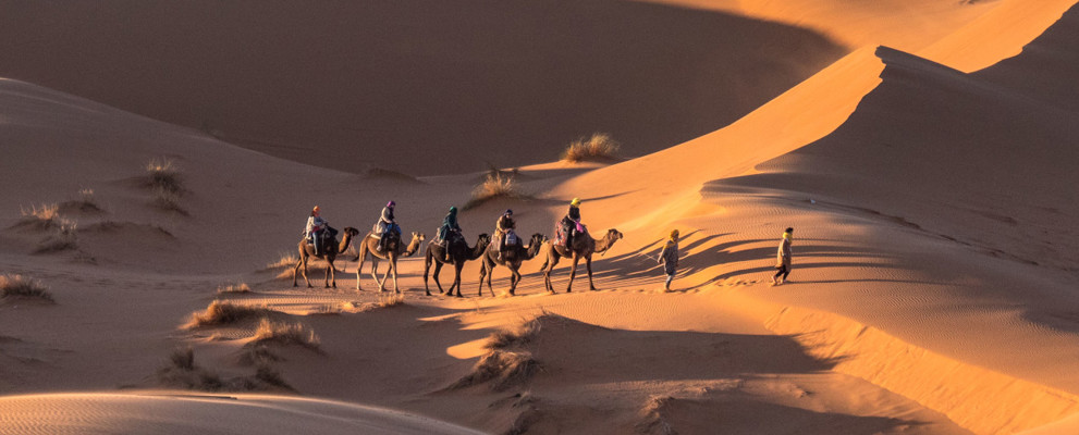 This morning we'll head to the heart of the Atlas Mountains and see the Todgha Gorge, with its steep canyon walls towering up to 400 metres high. We then follow in the footsteps of the sultans as we travel along the famous Route of a Thousand Kasbahs, where the series of imposing ancient ruined fortresses almost resemble sandcastles in the distance.