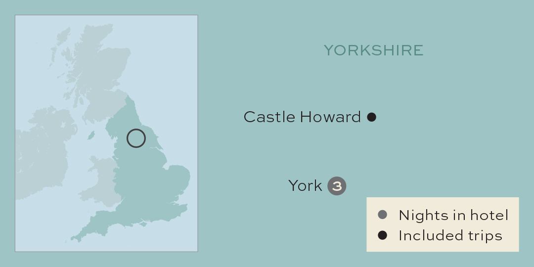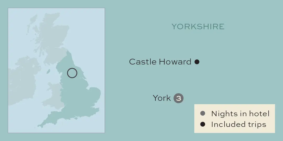 After breakfast today, we'll head out of the city to Castle Howard, one of Britain's finest stately homes. Located amid the Howardian Hills, which is an Area of Outstanding Natural Beauty, Sir John Vanbrugh built this magnificent house nearly 300 years ago, and the Howard family still live there today. You'll be able to explore the House at your own pace, and appreciate its stunning architecture and interiors, which have something to pique everyone's interest. With over 1,000 acres of Grade 1 listed parkland and gardens to explore, you can enjoy breath taking scenery outside as well.