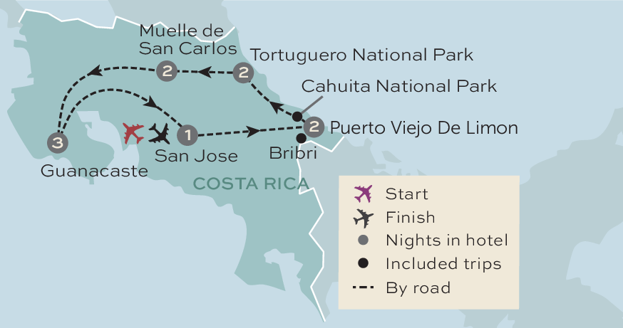 We've an early start today as we set off for Tortuguero National Park. We'll stop at a restaurant for breakfast, and as there are no roads into Tortuguero, the final part of our journey will be by boat. We'll arrive at our hotel in time for lunch, and will visit Tortuguero Village to find out about the local community this afternoon. We'll also visit the Caribbean Conservation Center to discover more about the sea turtles that nest on the nearby beaches.