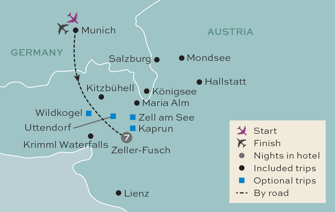Today we'll head to the world-famous ski destination of Kitzbühel, where one of the most demanding ski races “Hahnenkam” takes place once a year. We'll enjoy a cable car ride to the top, to see the Alps from above. We'll return down to the coach and continue on to Maria Alm, where you'll have free time to explore, this beautiful village offers options for lunch or a coffee. On our way back towards the hotel, we'll stop for a visit at Krimml Waterfalls – the highest in Austria, once back at the hotel, we will enjoy our last dinner together. Meals included: B,D