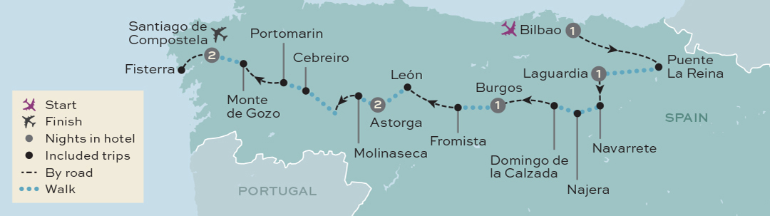 Walk 5.5km - 3.4 miles – 90 minutesOur first stop today is at Navarrete, a town built in the 12th century by the Knights of the Holy Sepulchre, which offers wonderful views of the surrounding countryside. Then we drive to Najera and visit its stunning Santa Maria La Real monastery before starting todays walk that takes us through more vineyards of La Rioja. We'll continue by road to Santo Domingo de la Calzada, an important stopping point for pilgrims. On arrival in Burgos, where we stay tonight, you can join an optional guided tour which features some of the highlights of the old town, amongst them the magnificent Gothic cathedral. Meals included: B,D